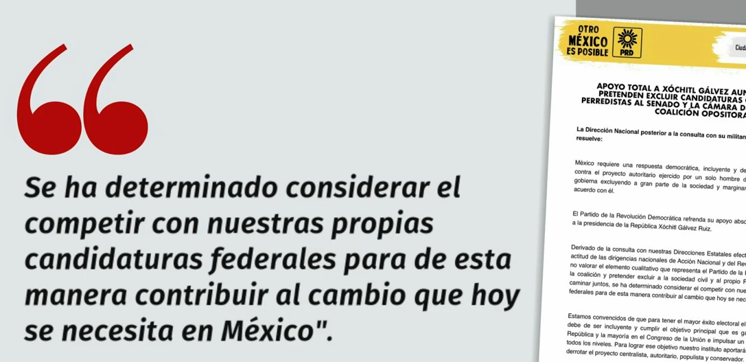 El Partido de la Revolución Democrática (PRD) ha anunciado que participará por sí solo en las legislaturas federales