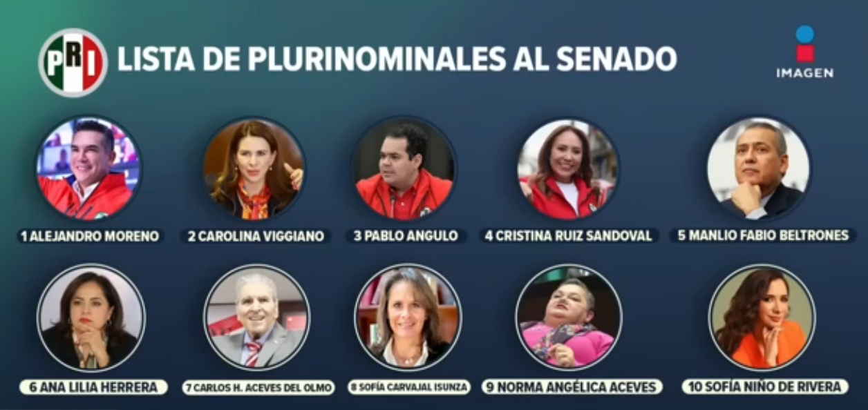 El Partido Revolucionario Institucional (PRI) ha dado a conocer sus listas plurinominales al Senado y a la Cámara de Diputados